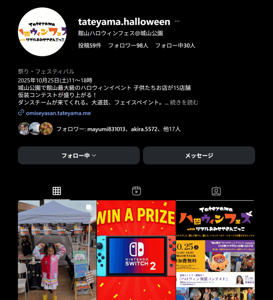 特に #館山ハロウィンフェス2025 は重要。運営はそれで検索をして集計します。